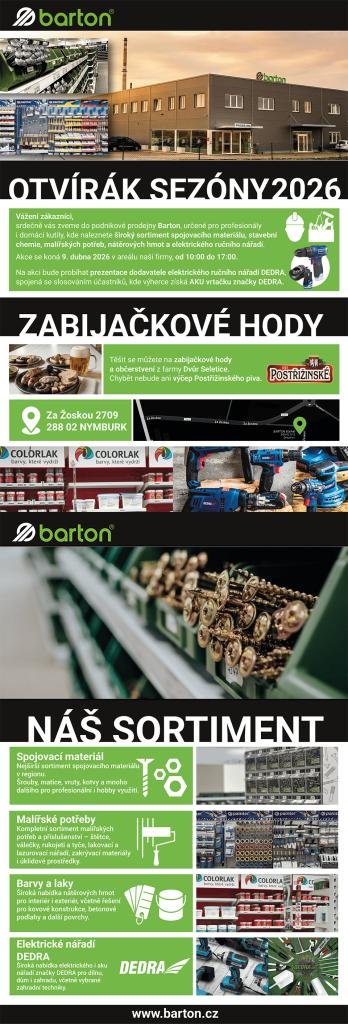 Firma Barton zve na otevírák sezóny 2026, dne 9.dubna od 10 do 17 hodin