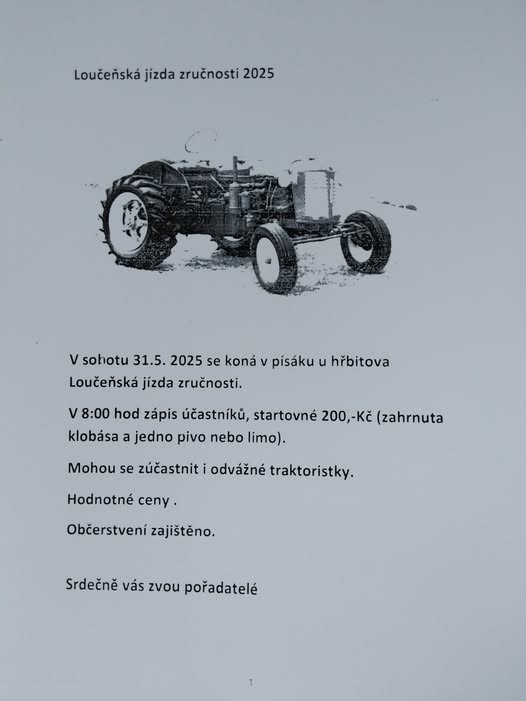 V sobotu 31.05.2025 se koná v písáku u hřbitova traktoriáda